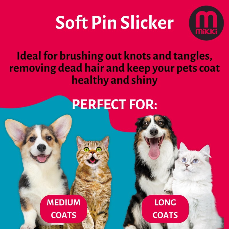 Mikki Dog, Cat, Puppy, Kitten Grooming Soft Pin Slicker Brush -For Knot, Tangles -Med-Lrg Pet-Large