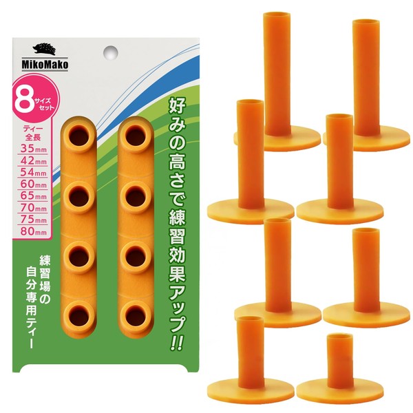 - 【 練習場での自分専用ゴルフティー 】打ちっぱなしの練習場やご自宅での練習などの際に大活躍の『 練習用 ゴム ゴルフティー 』を『 35㎜ 42㎜ 54㎜ 60㎜ 65㎜ 70㎜ 75㎜ 80㎜ 』と豊富なサイズが入った『 8個セット 』でご用意させて頂きました。【返品できます!】本製品には、「MikoMako」正規取扱店からの購入に限り購入日から30日間の返金保証をさせて頂いております。また製品についてご不明な点や問題などが御座いましたら、お気軽にカスタマーサポートからお問い合わせください。