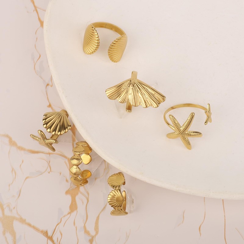 • Nature-Inspired & Symbolic Designs: The starfish stands for perseverance and growth, the seashell represents peace and relaxation, and the ginkgo leaf is a symbol of longevity and balance. These symbolic shapes make the rings meaningful, connecting you to nature's beauty.