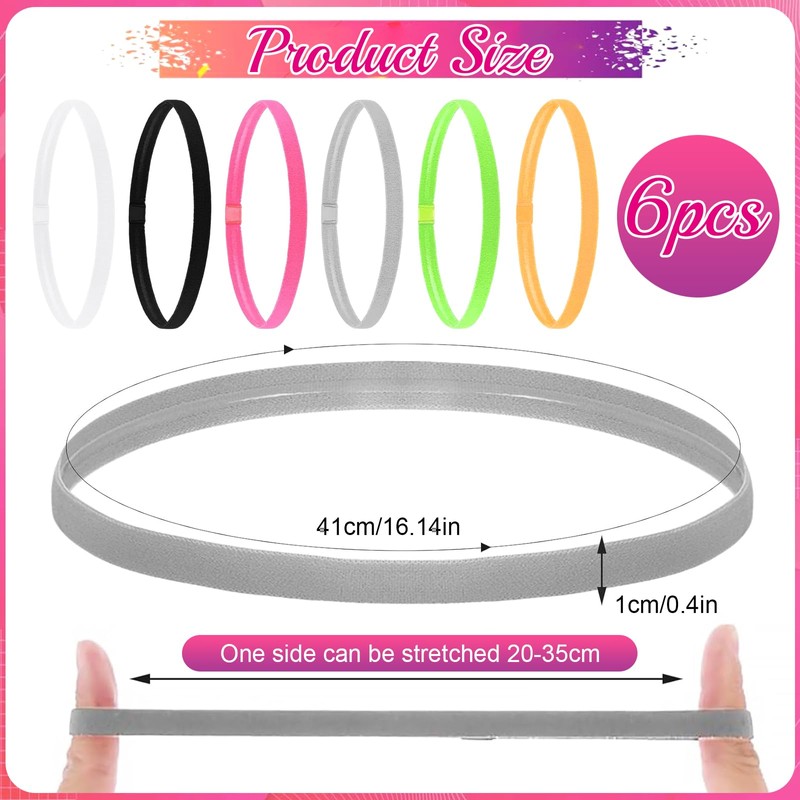 Mikqky 6 Stück Sport rutschfeste Haarband, Stirnband Herren, Elastische Haarband Jungen, rutschfeste Stirnbänder Damen Dünn, Dünn Haarband Herren, Haarband Kinder Fussball, Haarbänder Damen Für Yoga