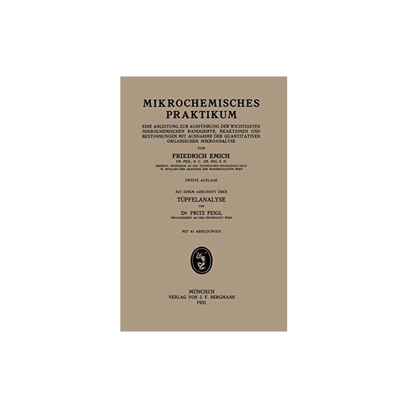 Mikrochemisches Praktikum: "Eine Anleitung Zur Ausführung Der Wichtigsten Mikrochemischen Handgriffe, Reaktionen Und Bestimmungen Mit Ausnahme Der Quantitativen Organischen Mikroanalyse" by Friedrich Emich