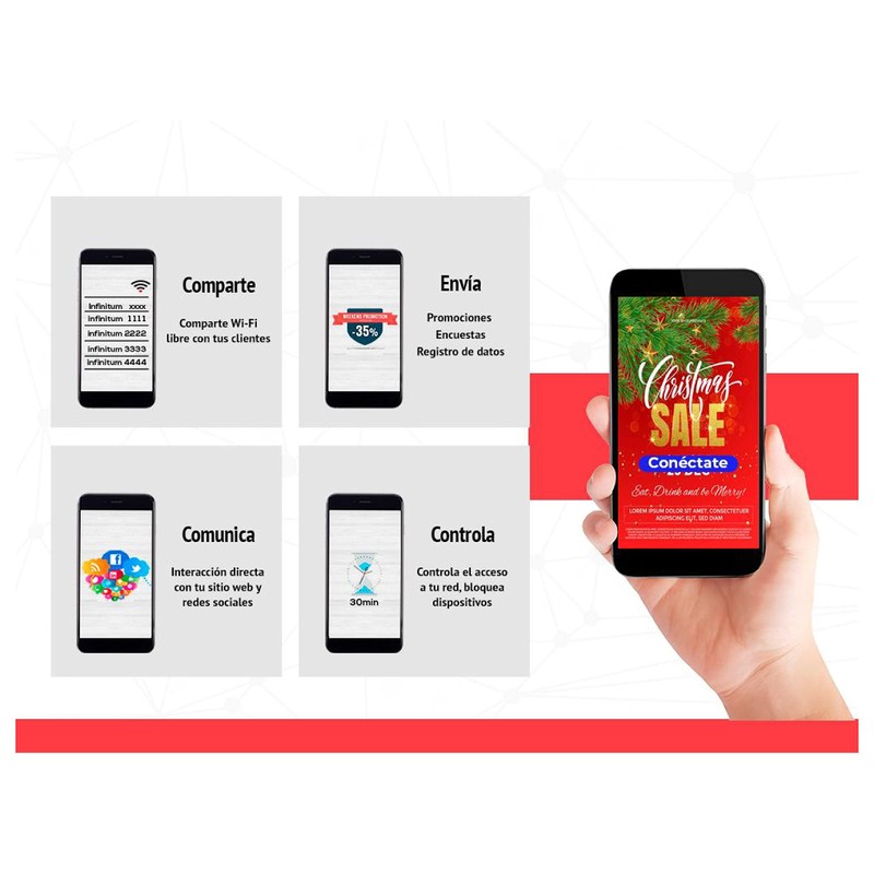Size: | 5 Puertos Fast Ethernet, 1 x USB 2.0, WiFi 2.4 GHz 802.11 b/g/n, Antena 2.5 dbi, hasta 1W |