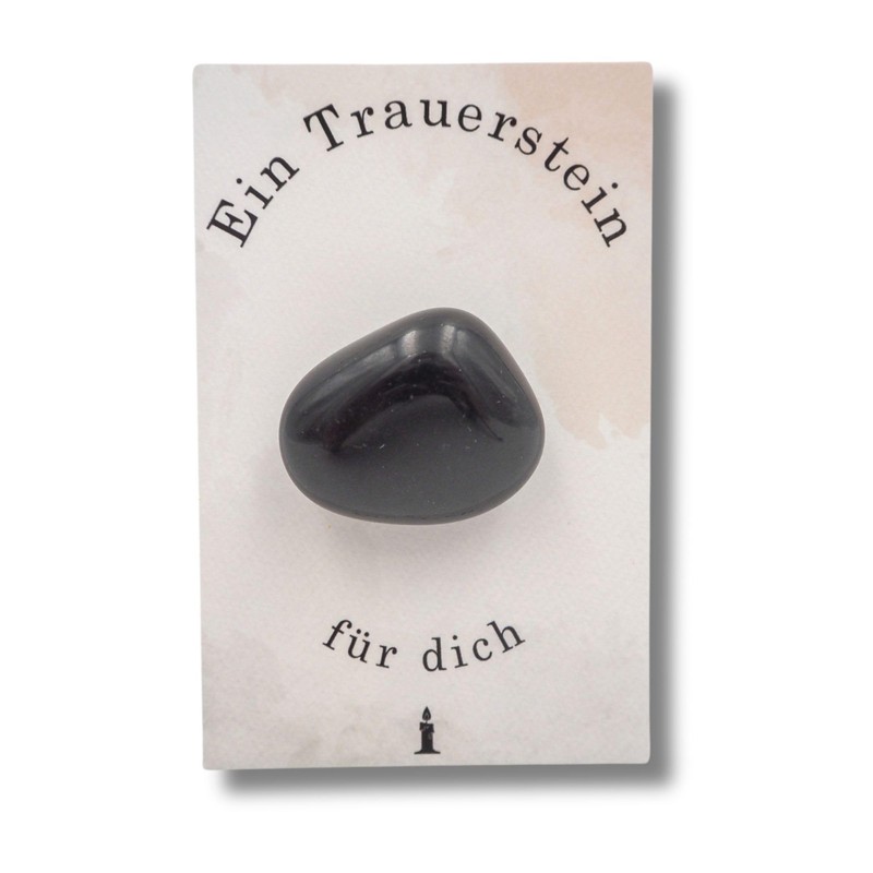 - Mourning stone as a comfort dispenser: you will receive a card in the dimensions 55 mm x 85 mm with a black stone. The comfort dispenser is already packaged and is suitable for giving as a gift.