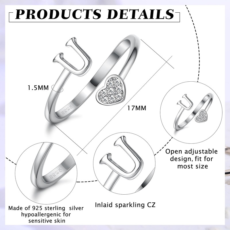 - 💝【Personalized Initial Rings】: Adjustable capital letter rings, classical but modern style and simplicity design with initials A-Z, 26 letters cover everyone's name, each letter has a special meaning for the owner, dainty heart shape means happiness and love. A perfect commemorative gift for everyone