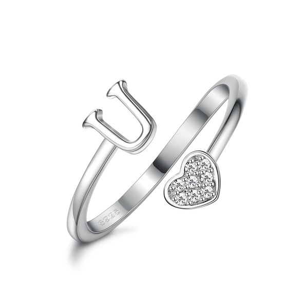 - 💝【Real 925 Sterling Silver】: Initial rings are made of genuine sterling silver with S925 stamp, plated with real 18k white gold, not rust or discoloration, give you 100% lead free, nickel free and wear experience, not cause allergies or itchy to your fingers, paved with sparkle cubic zirconia on the heart