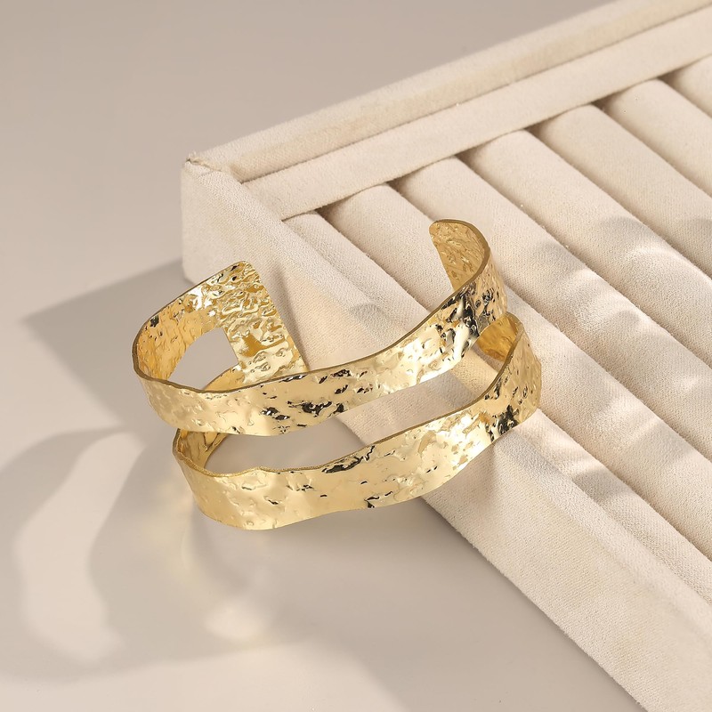 - IRREGULAR BANGLE GOLD: DESIGN INSPIRATION The gold bangle brings to life the minimalist beauty of irregular shapes, with a hammered texture that gives it a rustic vintage look. Unique and stylish gold wide bangle, which is a luxurious and eye-catching addition to your wrist