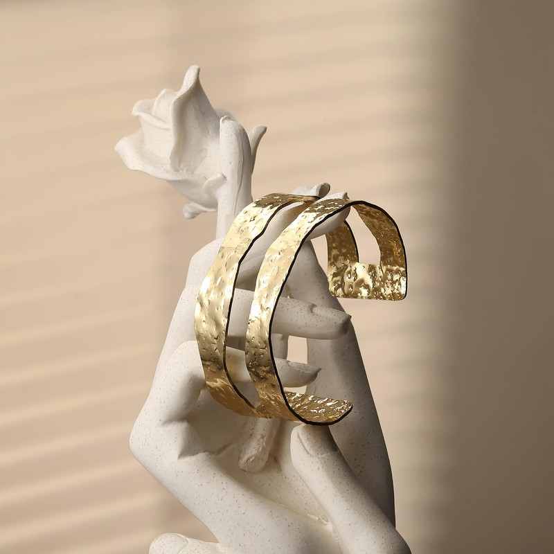 - Gold bracelet women's material: these gold cuff bangle bracelets are made of high-quality copper, hypoallergenic and free from nickel, lead and cadmium; it is lightweight and durable, not easy to deform. The electroplated 18K gold gives it a luxurious and stylish look that will enhance any outfit