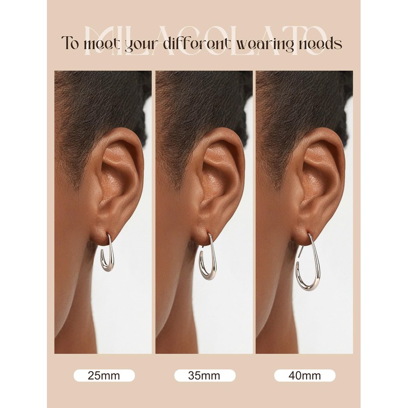 MILACOLATO G23 Titanium Creole Earrings Gold Plated 18 Carat Hypoallergenic Drop Trendy Oval Pull Through Lightweight Silver Creole Statement Drop Earrings Large 25/30/40 mm, Titanium, No Gemstone