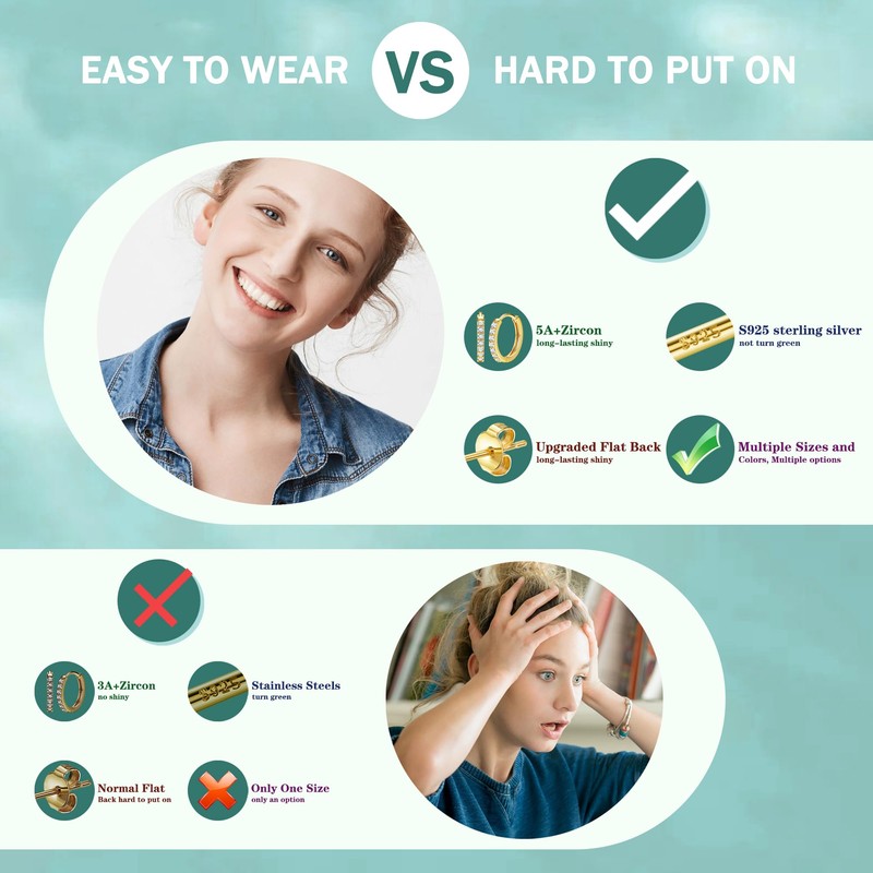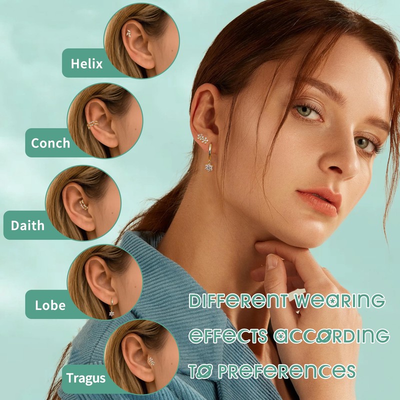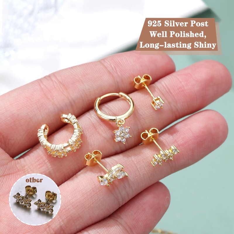- Hypoallergenic 925 Sterling Silver Earrings Set for Women---This earrings set made of premium 925 sterling silver post. Great for sensitive ears, nickel and lead free, colorfast. High polish, comfortable to wear. Can be used as stacked earrings, sleeper earrings, popular as earrings set for multiple piercings