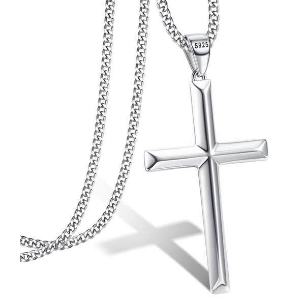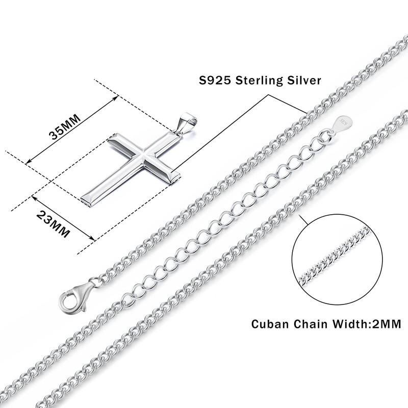 - Materials: High polish shiny 925 STERLING SILVER with white gold plated for both cross pendant part and chain part. Ensure necklace are flawless and have long lasting color.