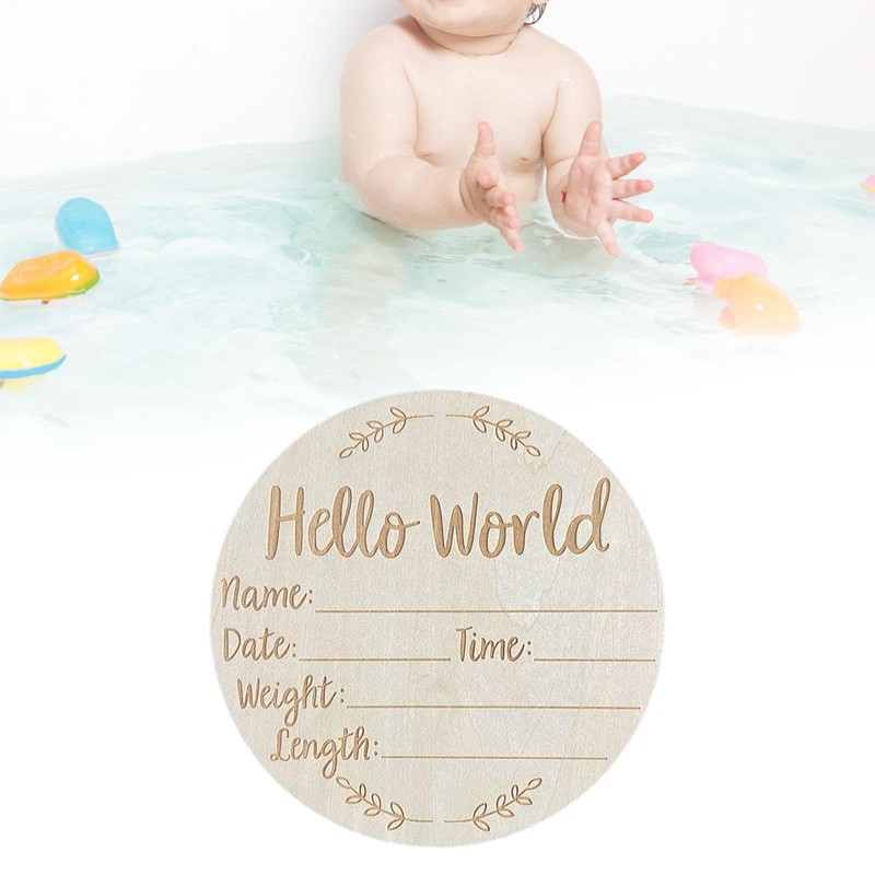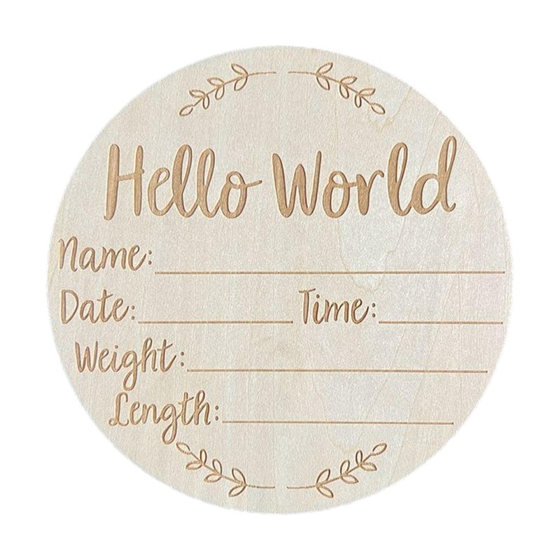 Milageto Newborn Announcement Sign,Welcome Sign,Nursery Party Decoration Birth Baby Name Plaques Wooden Hello World Sign,for Baby, Style A
