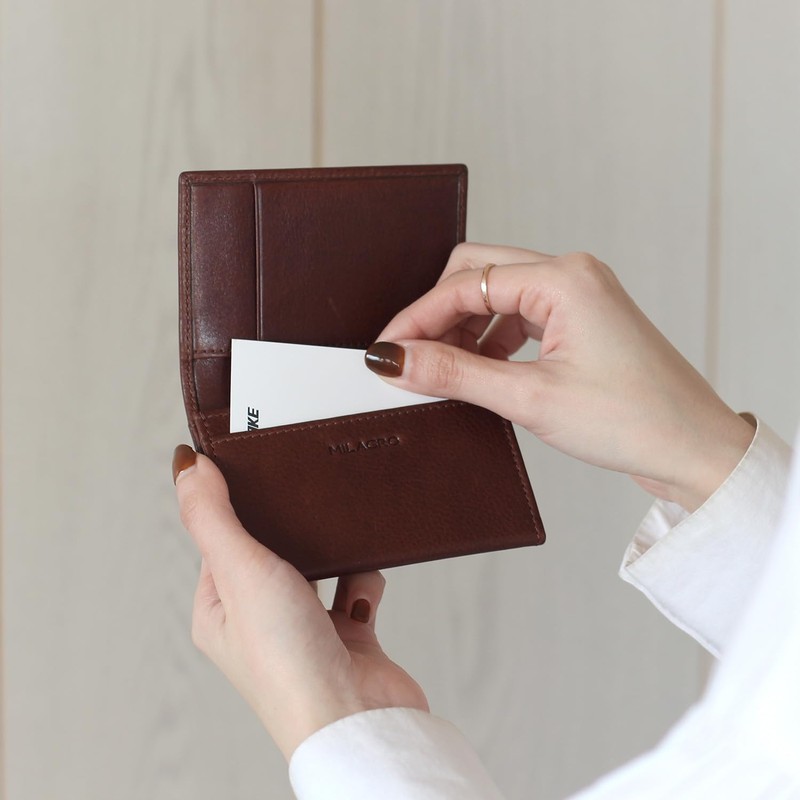 MILAGRO SLM1296 Soft Cowhide Leather Bamboo Gusset Business Card Holder (Men's, Business Card Holder, Slim Card Case, Milling Leather, Popular), dark brown