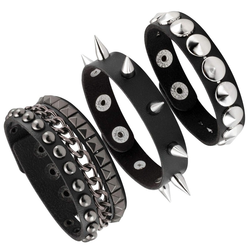 - Unique punk rock design with spike studded rivet bracelet adds a cool and edgy touch to any Halloween costume or everyday outfit.
