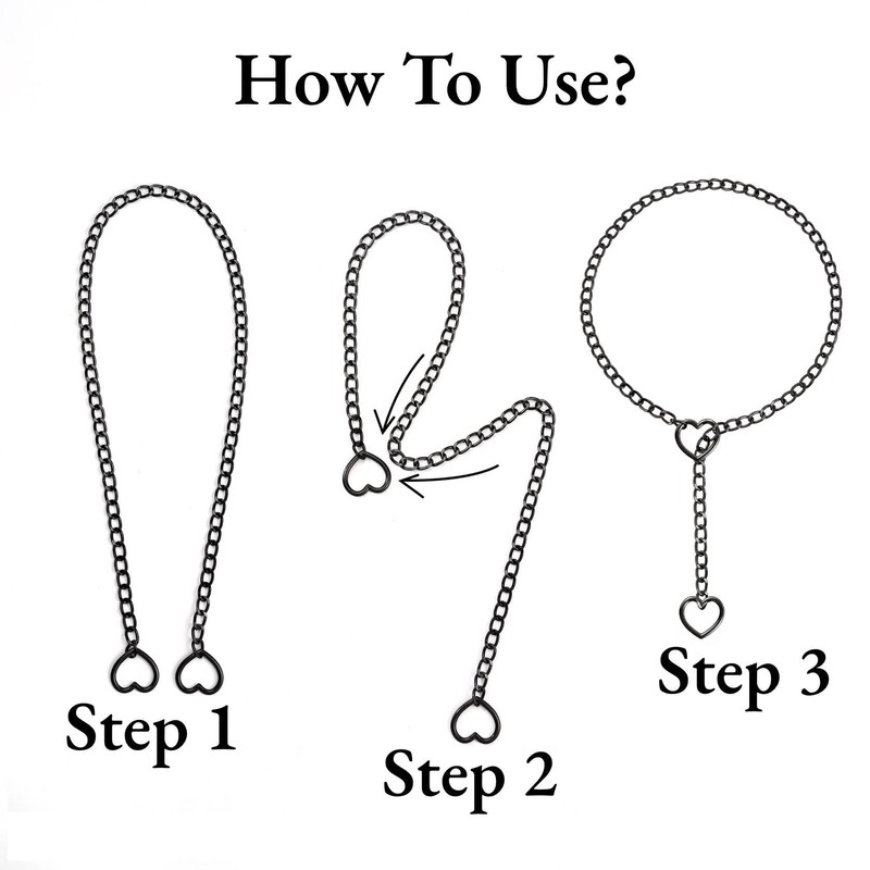 - How to Use this Y-Necklace? To wear your slip chain necklace, firstly hold one end ring and just let the Cuban Link Chain go through one of the large heart shaped rings, and then continue pulling it to adjust what length your desired.