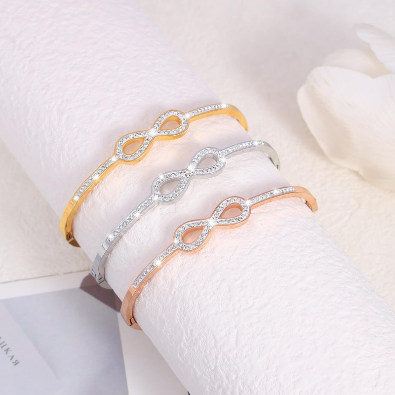 - Design: Infinity love bracelet for women, 2.5 mm stainless steel infinite symbol bangle. Simple design shows the eternity of love, full polishing can bring the comfortable wearing experience. Stainless steel bangle is very cute and robust making a great addition to your fashion style