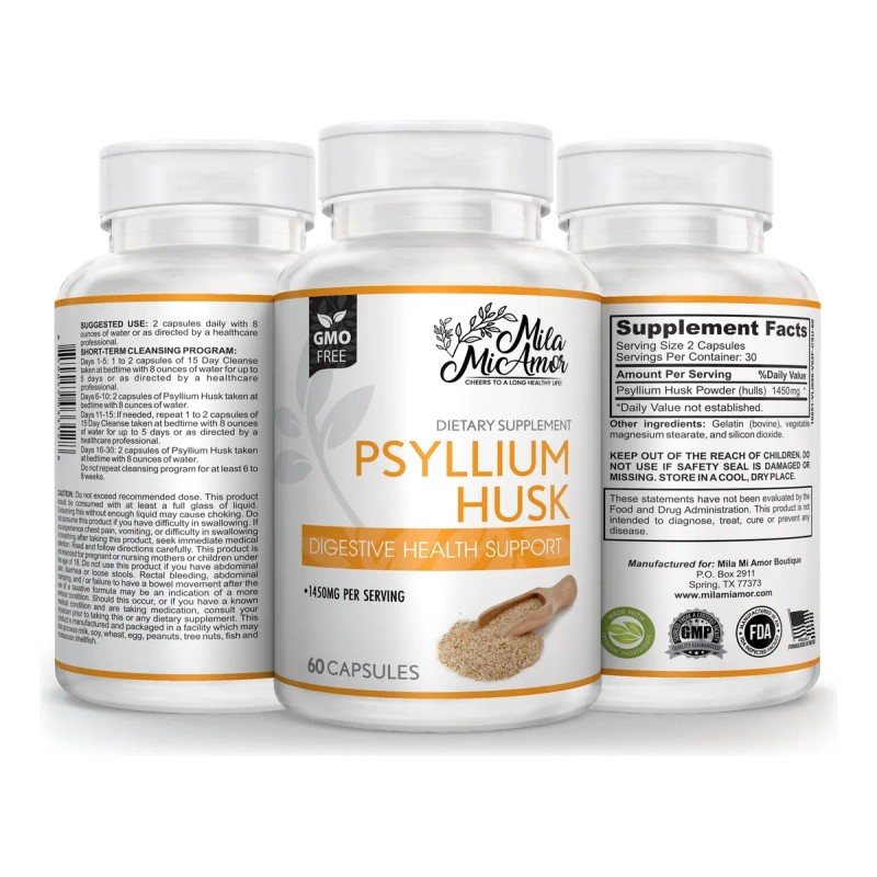 🌿 Milamiamor Cáscara de Psyllium – 60 Cápsulas SFN | Apoyo Natural para la Salud Intestinal y Digestiva 💩💚
