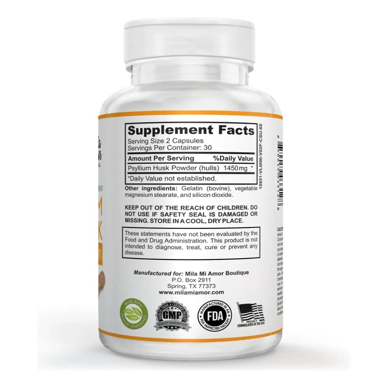 🌾 Milamiamor Cáscara de Psyllium – 60 Cápsulas 💊