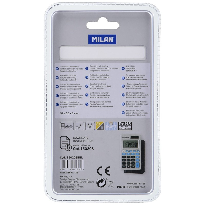 MILAN 8桁電卓 ポケットサイズ 150208BBL ブルー