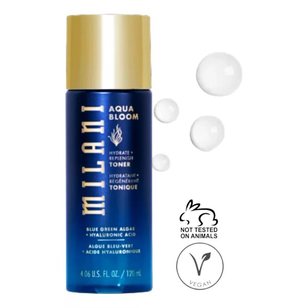 Observa la diferencia con Aqua Bloom. Milani Aqua Bloom Hydrate + Replenish Toner es un tónico diario ligero que elimina las impurezas y los restos de maquillaje mientras repone la humedad de la piel. La fórmula suave tonifica y nutre la piel sedienta sin pelarla ni resecarla. Está mejorado con ácido hialurónico ultrahidratante e ingredientes marinos recolectados de forma sostenible: agua de mar enriquecida con minerales, espirulina y algas caviar verdes. Las algas son un ingrediente superalimento lleno de nutrientes, minerales, antioxidantes y péptidos que ayudan a aumentar el nivel de humedad de la piel. Este producto está probado por dermatólogos.