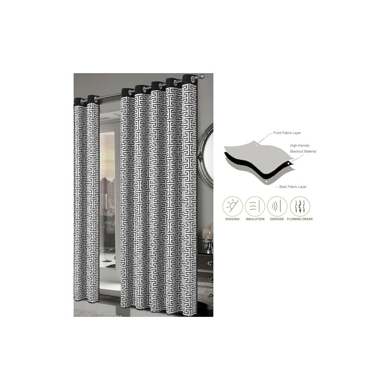 Milano Blackout Eyelet Curtains – Thermal Insulated Geometric Print Ring Top Curtain Pair – Light Blocking Window Drapes for Bedroom, Living Room & Home Décor (Milano, 66" (Width) x 54" (Drop))