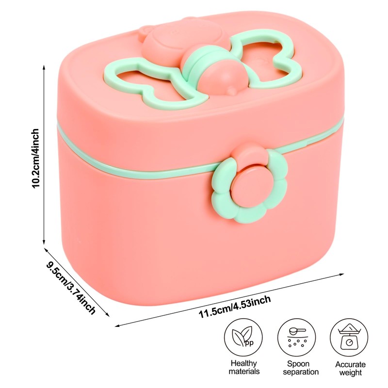 Milchpulver Portionierer,410ML luftdichter tragbarer Milchpulver-Behälter Tragbarer Milchpulver Spender Baby mit versiegelter Silikonringabdeckung,Planierstange und Löffel Milchpulver Container (Rosa)