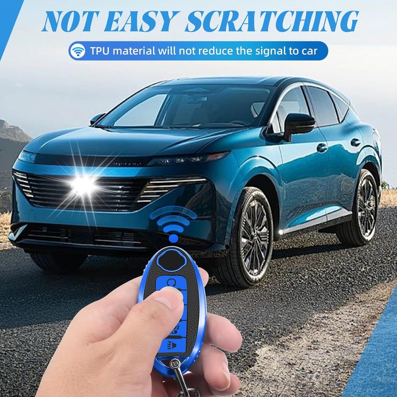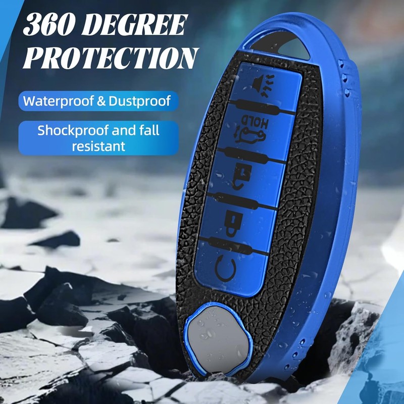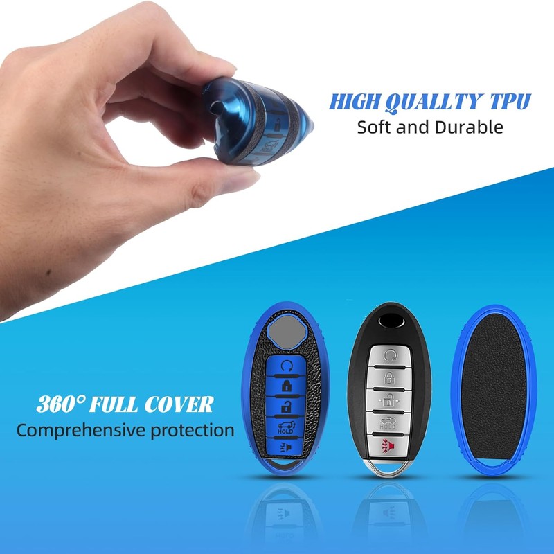 MILD EAST for Nissan 4/5 Button Key Fob Cover, Premium Soft TPU Full Protection Key Case for Altima Rogue Sentra Maxima (5-Button-Blue)