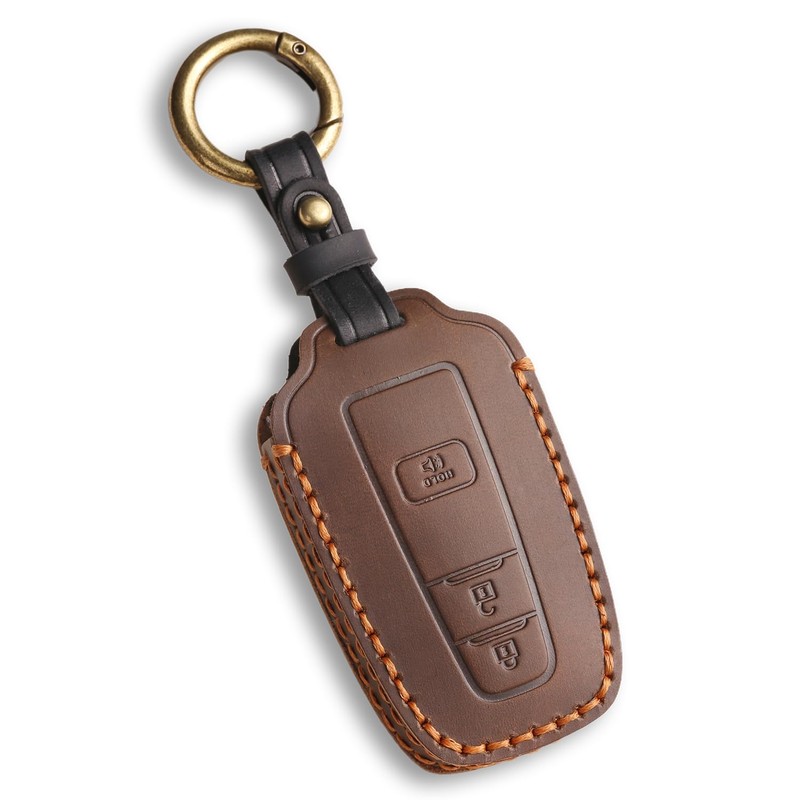 MILD EAST for Toyota Key Fob Cover Genuine Leather Key Case Shell Compatible with 4Runner Highlander Camry RAV4 C-HR (Brown, 3 Buttons)