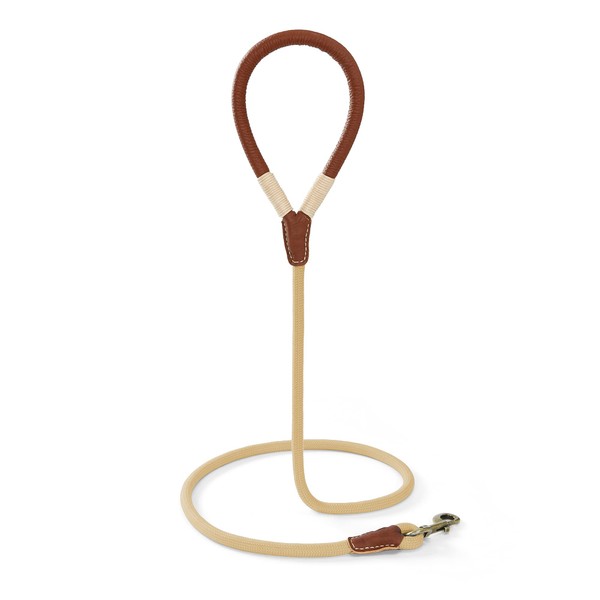 Mile High Life Dog Leash | Strong Rope Dog Leash w Soft Leather Wrapped Handle | 6 Feet Dog Leash w Heavy Duty Clasp | Yellow Rope Leash for Small Medium Large Dogs | Diameter 1/2" (72 Inches)