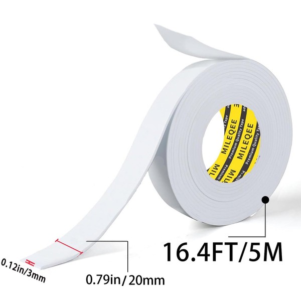 MILEQEE Single-Sided Adhesive Foam Tape EVA White, Multipurpose Sponge Sealing Strip Window Door Insulation Table Edge Protector Wall Bumper Guards, 0.8in x 16.4FT