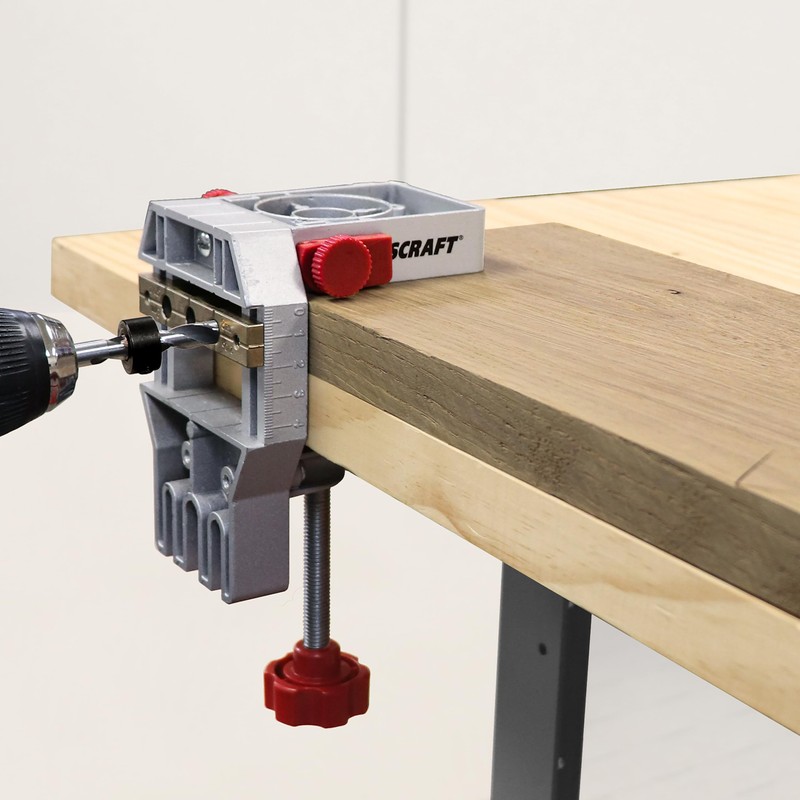 - Hardened steel bushings provide long-lasting, accurate dowel hole drilling