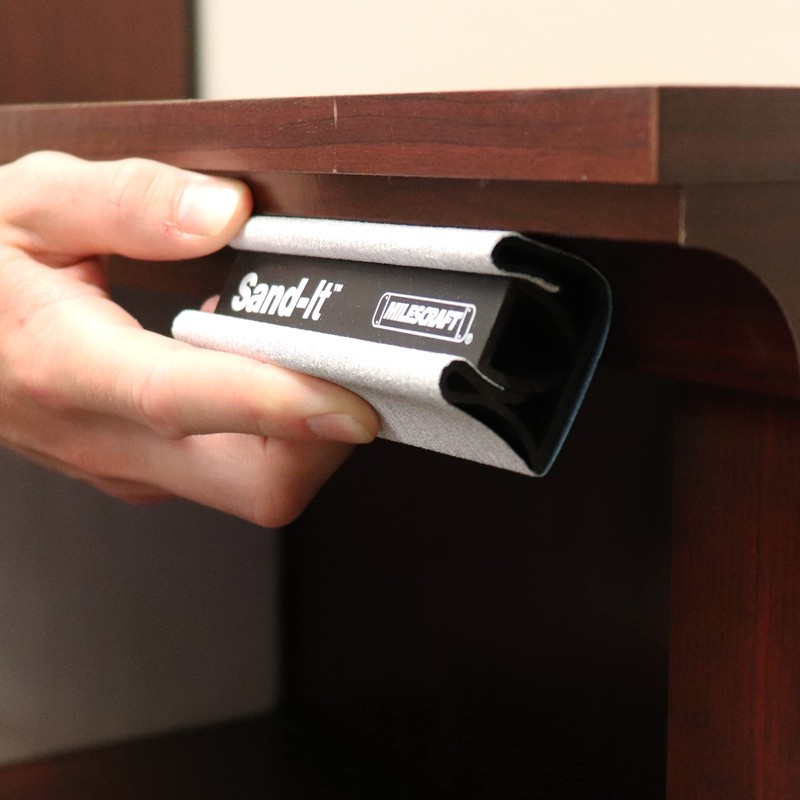 The Sand-It™ from Milescraft is the compact, quick and convenient sanding solution for all small projects. The unique, patented, multi-sided design gives you the ability to sand multiple surfaces using the same sanding block. Each side of the Sand-It™ has a different shape perfect for all projects. The sanding block offers three different rounded edges, a concave profile, a flat profile, and a tight edge that gets into the corners. For detailed radius work, two small rounded edges allow you to get into tight areas and edges of routed boards. An edge with a larger radius speeds up bigger projects using a broader curve that covers more ground. For sanding rods, spindles, poles, and more, the concave face cradles the round edge of your piece and quickly smooths it out. The flat surface is great for sanding pocket hole plugs, wood plugs, or removing any rough surface. Use the tight edge to squeeze into the nooks and crannies to finish off sanding. The Sand-It™ is also highly adaptable and quick to modify. It is compatible with any quarter sheet of sand paper. Change grit from course to fine in seconds with a quick snap. The Sand-It™ lasts from start to finish as you perfect your project. When you need a versatile sanding tool that's tough on rough surfaces and ready for anything, remember to go with the grain, and go with the Sand-It™.