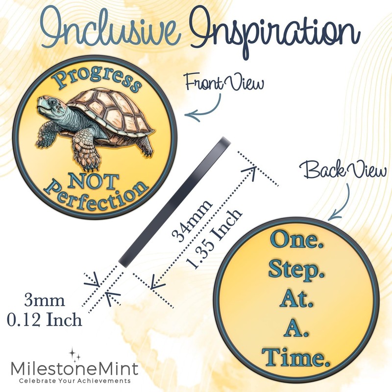 - Inspirational Message: Our sobriety chip features a 3D turtle design that symbolizes resilience, patience, and progress, echoing the message of the coin.