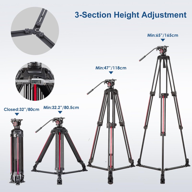 - 【Easy to install and versatile】The heavy duty video tripod has a quick release plate that enables easy installation and removal in a second. The quick release plate comes with 1/4 and 3/8 screws and is compatible with a variety of photography and video equipment such as recorders, cameras, slides, etc. Compared to traditional tripods, it has a 75mm bowl diameter, you will be able to set up heavier cameras to provide reliable support, it is able to carry 35 kg of weight.