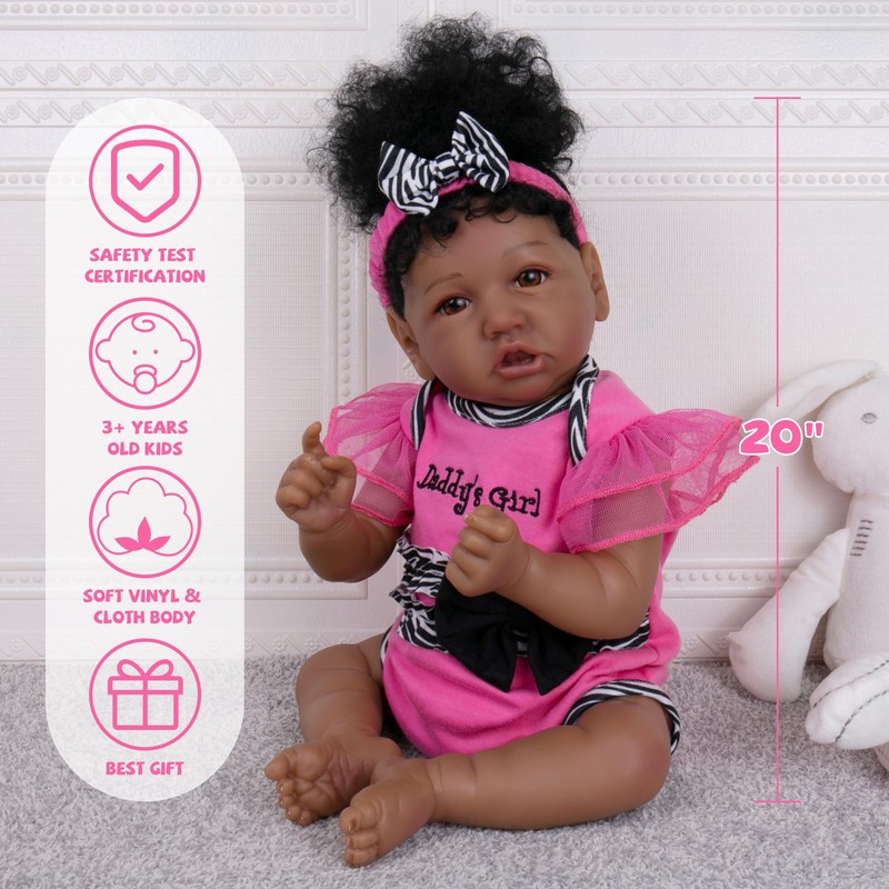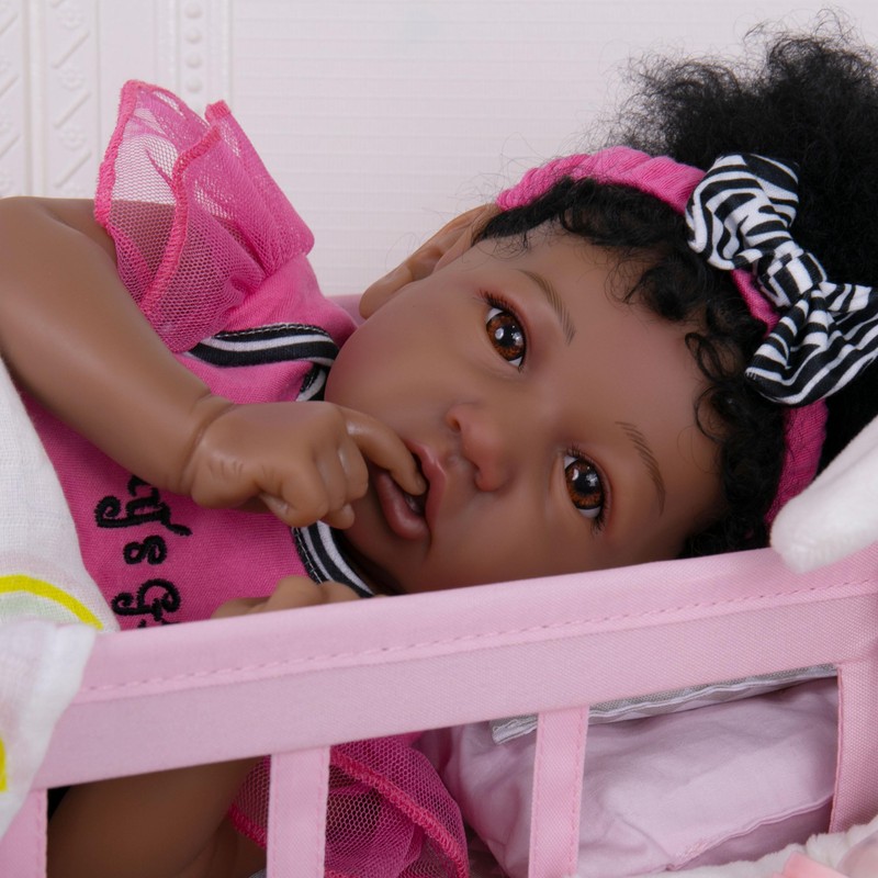 - Realistic baby dolls girl:When you meet this adorable african american baby doll girl, you will be charmed by her irresistible charm. Crafted by professional artists, she bears a striking resemblance to a real baby with meticulously hand-rootted black curly hair, taupe eyes, hand-applied eyelashes, and realistic skin texture. Holding the real looking baby dolls evoke the sensation of holding a real baby dolls that look real.