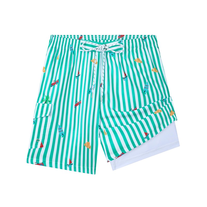 - [Pattern Swim Trunks with Compression Liner]The mens 7 Inch swim trunks of premium fabric, which is made of polyester and spandex. Have a Stretch Built-in compression lining protects your skin from scratch and prevents from sticking to your skin when the shorts are soaked. while provides better breathability and elasticity.