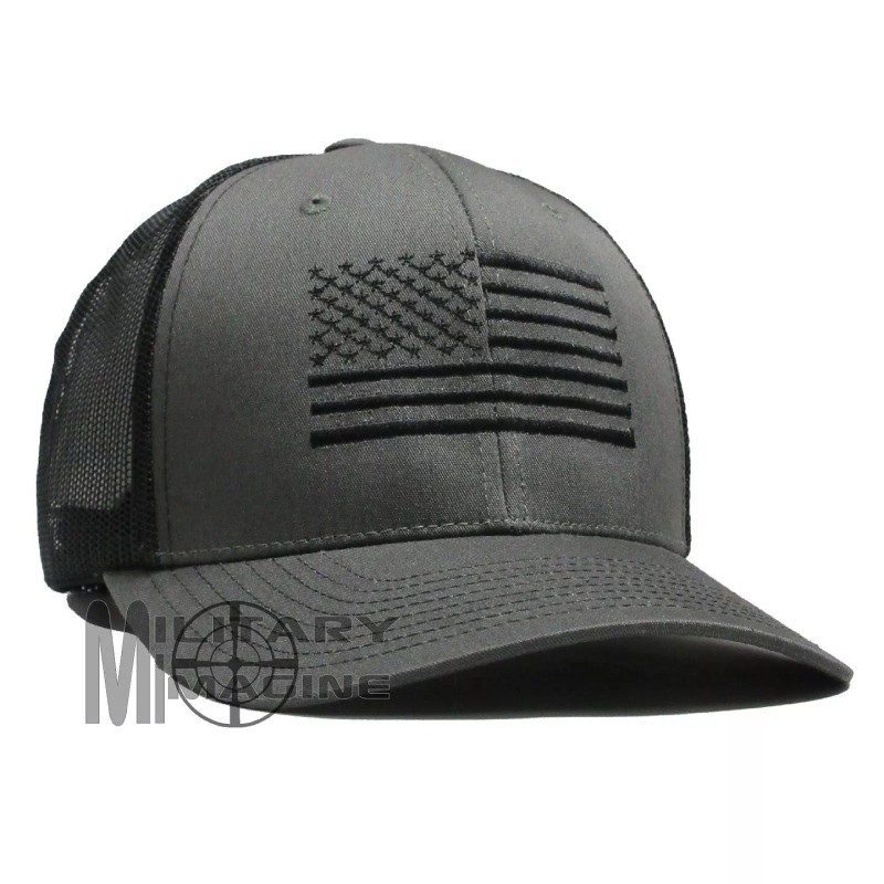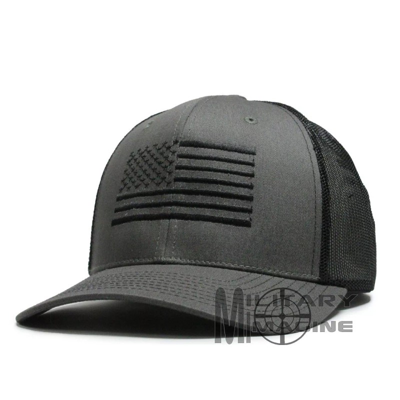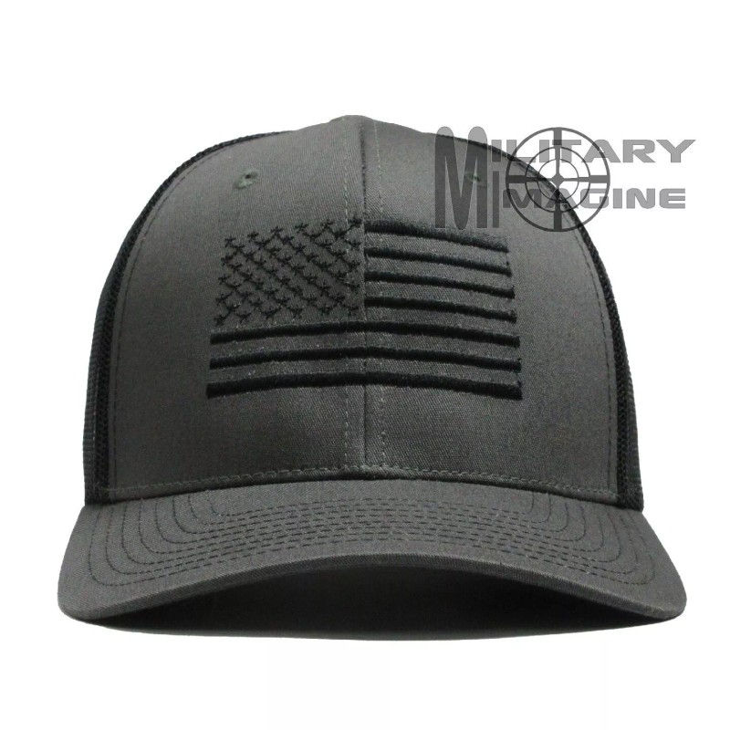 Military Imagine USA Flag hat Charcoal / Black, Black Flag cap Trucker Mesh Tactical Snapback