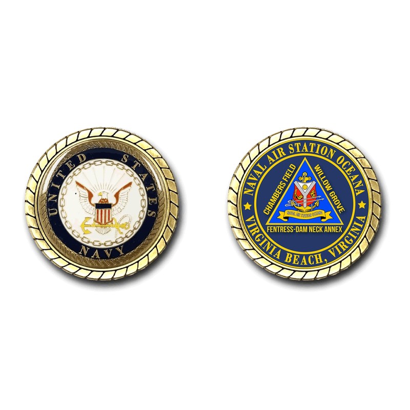 - Beautiful US Navy Naval Station Challenge Coin with US Navy on one side and the Naval Station Logo on the other side.