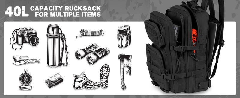 【LARGE CAPACITY】40L large capacity military tactical backpack, made of durable waterproof high-density fabric, large capacity tactical backpack, can perfectly replace 3 days assault backpack, outing backpack, emergency backpack, combat backpack, molle emt backpack, edc outdoor backpack, hunting backpack, travel backpack, hiking backpack