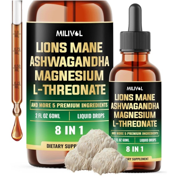 MILIVOL 10in1 Magnesium L-Threonate Liquid Drops with Magnesium Glycinate Ash...