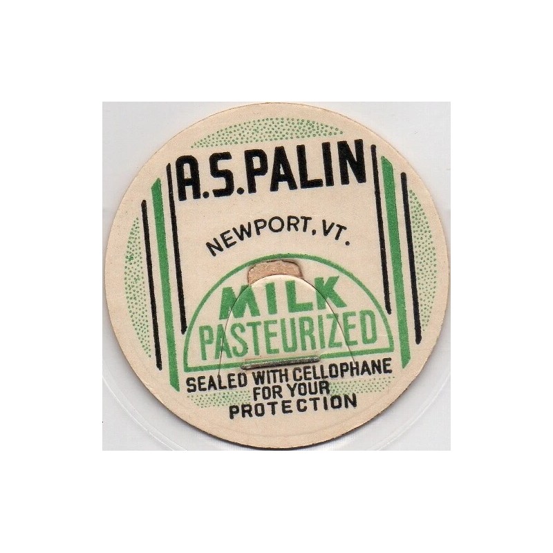 Milk Bottle Cap - A. S. Palin - Newport Vermont, VT - SEALED WITH CELLOPHANE