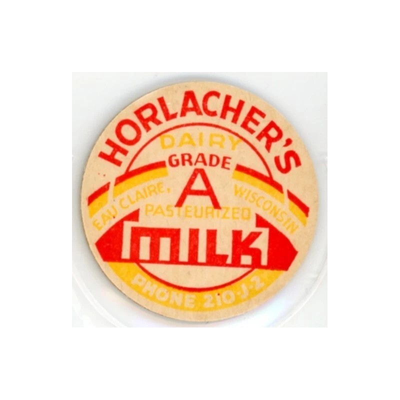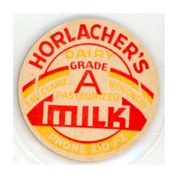 Milk Bottle Cap Insert- Horlacher's Dairy - Eau Claire, Wisconsin - PHONE 210 J2