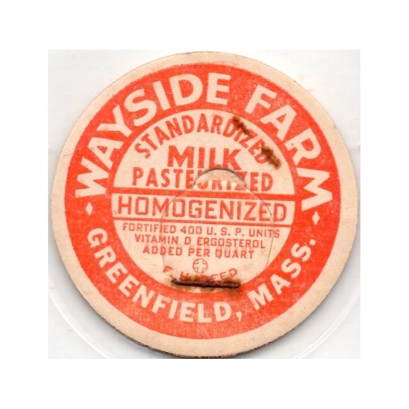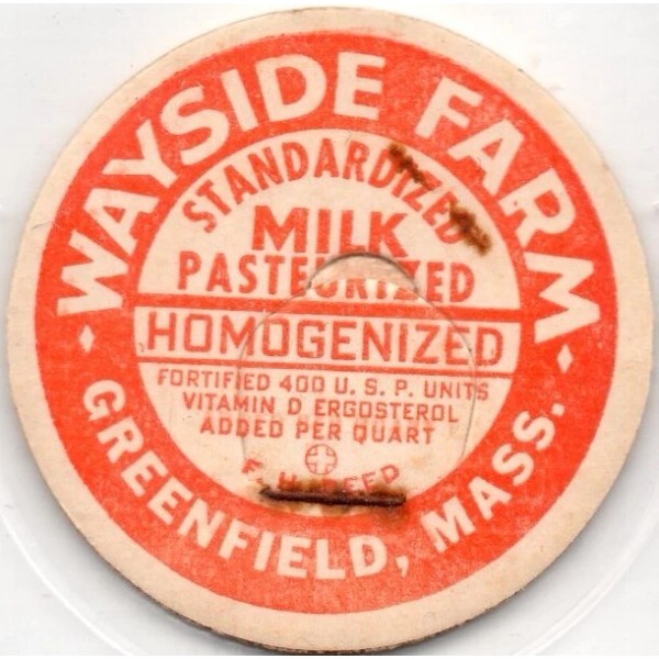 Milk Bottle Cap - Wayside Farm - Greenfield, Massachusetts -  STANDARDIZED