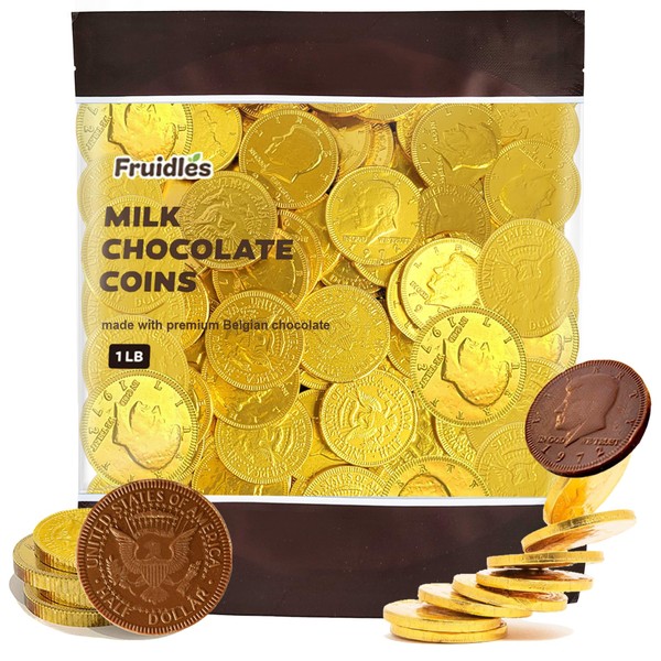 Gold Half-Dollar Milk Chocolate Coins Gelt, Made with Premium Belgian Chocolate, Kosher Certified Dairy (1 Pound)