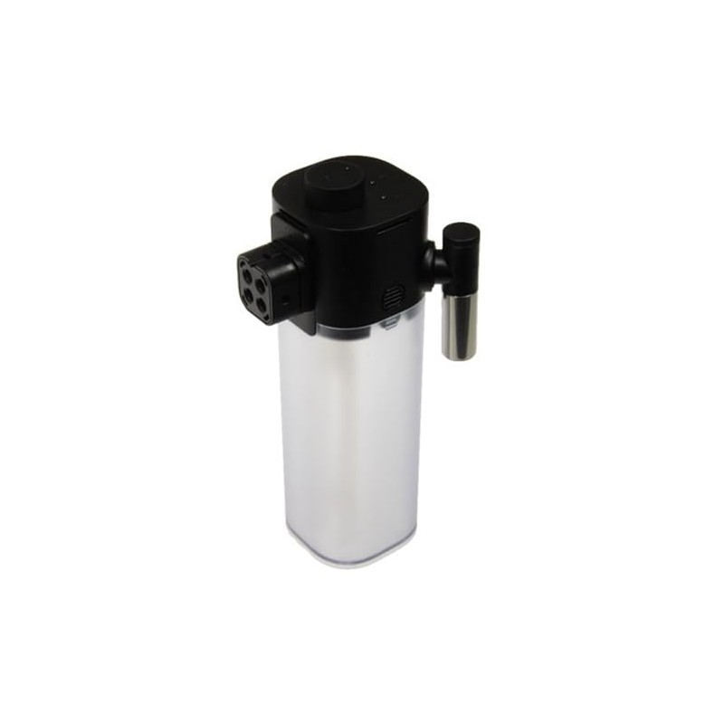 Milk container complete with lid including frother, intake pipe for milk and cappuccino nozzle, used in fully automatic coffee machines.