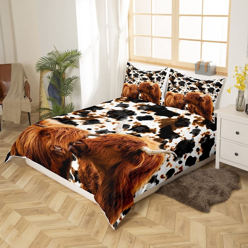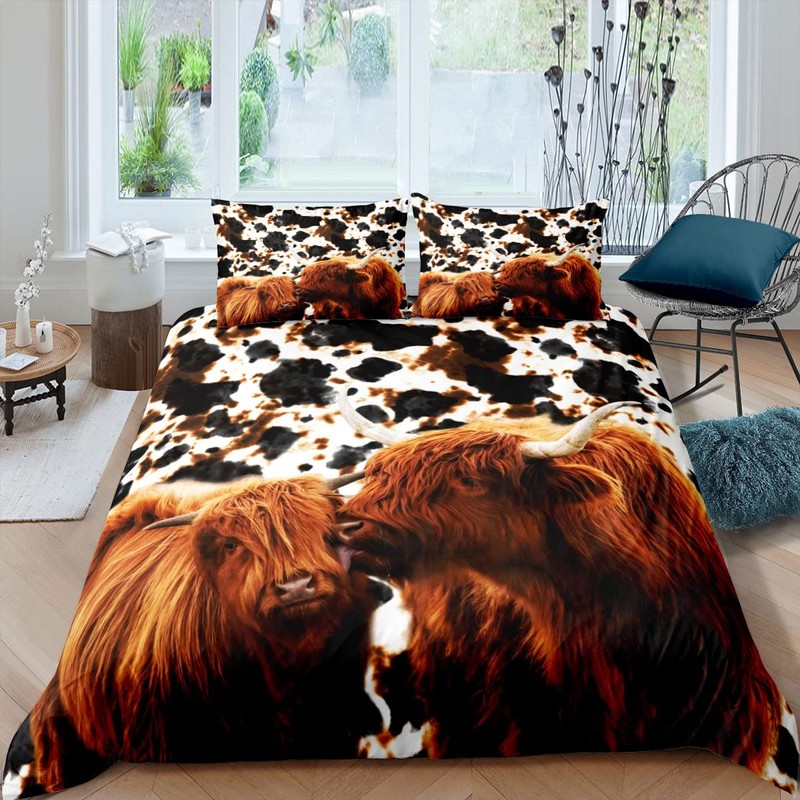 Milk Cow Print Duvet Cover Set King Size, Farmhouse Animal Skin Highland Catt...