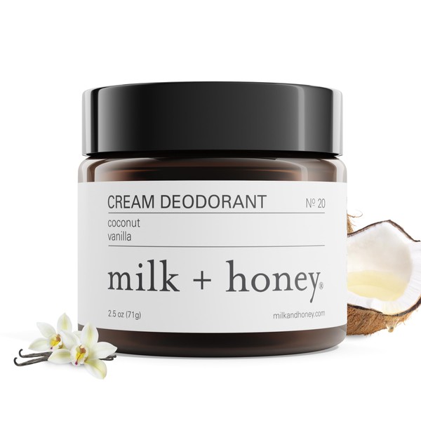 milk + honey Cream Deodorant No. 20, Aluminum Free Deodorant with Coconut and Vanilla, Natural for Men and Women, for All Skin Types, 2.5 Oz