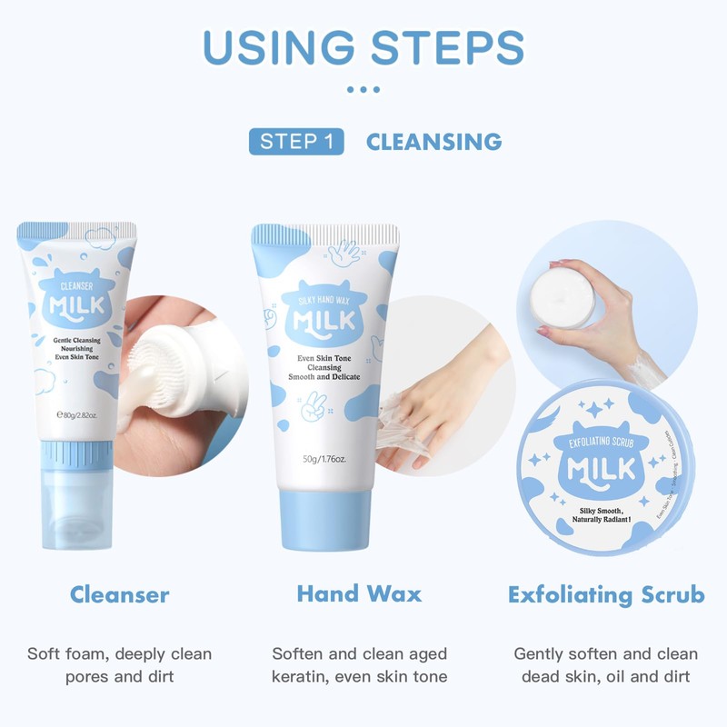 - 【6-Piece Milk Skincare Set】Complete routine includes hand wax, eye cream, cleanser, scrub, moisturizer & sunscreen for glowing, youthful skin. Ideal as a skincare gift set for women & teens.