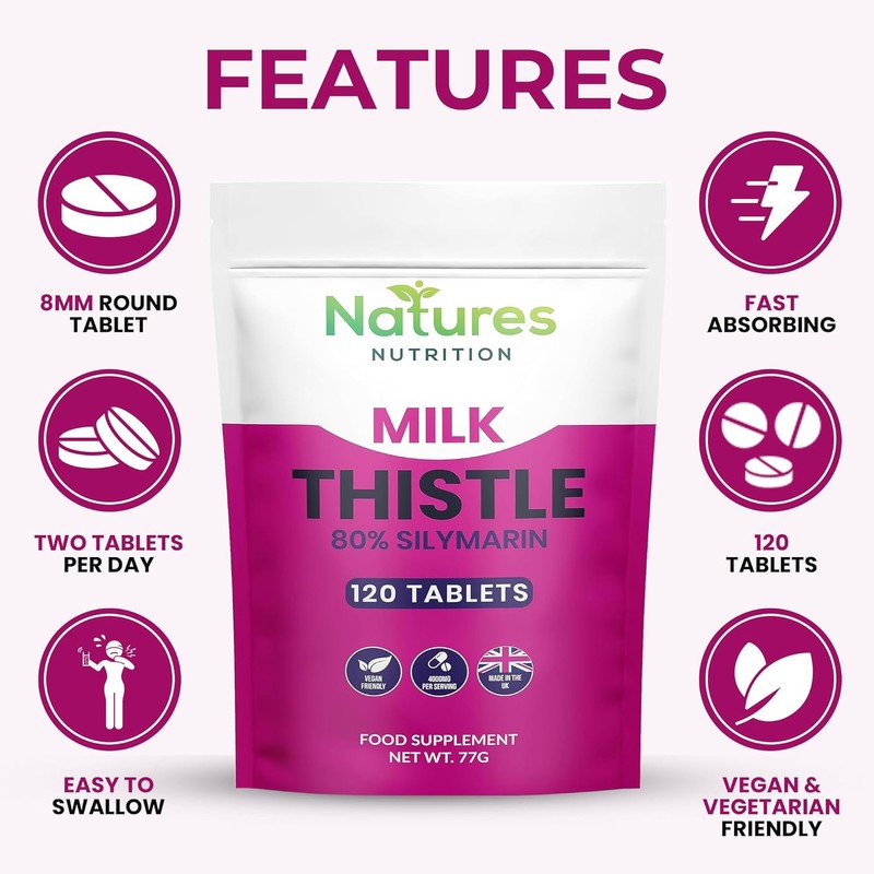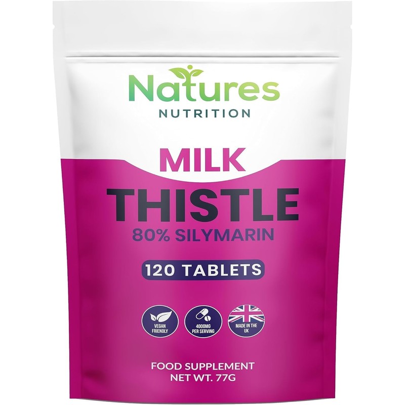 WHY CHOOSE OUR MILK THISTLE TABLETS 💲 📦 EXCELLENT VALUE & ECO-FRIENDLY PACKAGING - Our Milk Thistle tablets come in flat-pack packaging, reducing postage and storage costs compared to traditional bottled supplements. These savings are passed on to you, enabling us to invest in researching supportive supplements. This dedication lets us offer our valued customers top-notch nutritional products at affordable prices. ♻️ 💚 MINIMIZING PLASTIC, REDUCING WASTE - WE LEAD THE WAY IN SUSTAINABLE SUPPLEMENTS IN THE UK - We prioritize environmental well-being and have dedicated substantial resources to partner with ethical and sustainable suppliers for both supplements and packaging. Our journey toward eco-friendliness is ongoing, with our next milestone being to ensure all product packaging becomes 100% recyclable. ✅ SUITABLE FOR VEGETARIAN & VEGAN DIETS, GLUTEN-FREE We acknowledge the significance of inclusive, ethically sourced, and produced supplements. At Natures Nutrition, our Milk Thistle is the ideal choice, designed to cater to diverse needs while upholding the highest standards. Suitable for vegeterians vegan diets & Gluten free Rich in Silymarin 120 Milk Thistle Tablets - Premium Quality- Crafted using high-quality milk thistle extract This product is not intended to diagnose, treat, cure or prevent any disease.