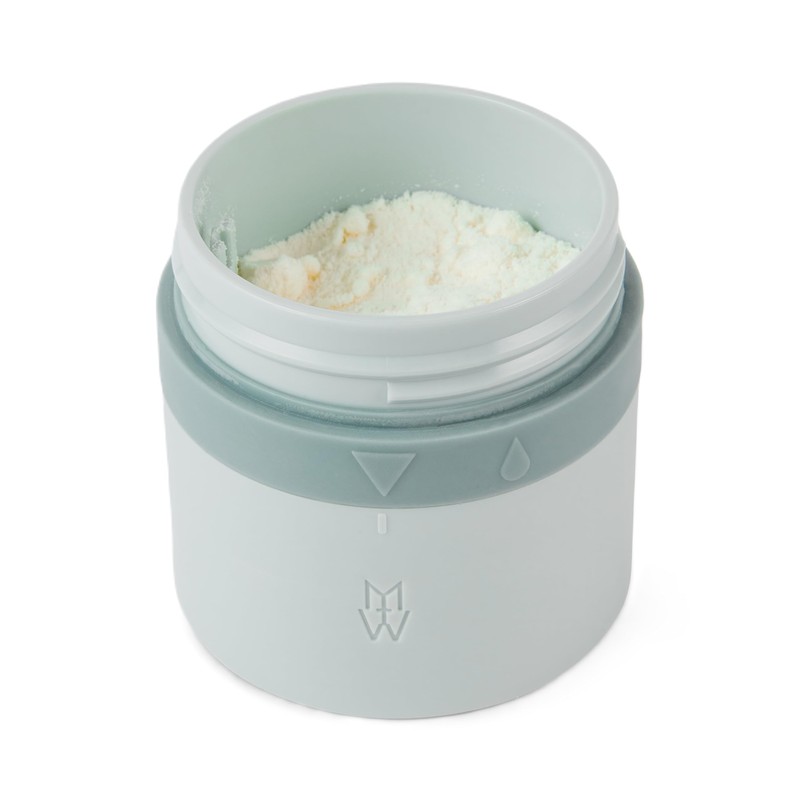 - LEAK-PROOF & EASY TO CLEAN: TWIST TO SWITCH MODES - Designed for mess-free travel and easy cleaning (dishwasher safe). Twist the band to switch modes: Closed (solid triangle), Open (hollow triangle), or Cleaning Mode (water drop). NOTE: If water gets into the powder chamber, it may be in Cleaning Mode. Always check it’s set to Closed until you're ready to mix.