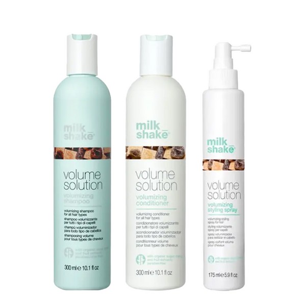 The milk_shake Volume Solution Trio Bundle is the ultimate hair care set designed to give your hair incredible volume and body. This bundle includes three essential products from the milk_shake Volume Solution range, each formulated to enhance the fullness and vitality of your hair. Whether you have fine, limp hair or just want to add some extra oomph to your locks, this trio is perfect for achieving salon-quality results at home. The shampoo, conditioner, and styling spray work together to cleanse, condition, and style your hair, leaving it looking voluminous and full of life. What is included in milk_shake Volume Solution Trio Bundle? • milk_shake Volume Solution Shampoo 300ml• milk_shake Volume Solution Conditioner 300ml• milk_shake Volume Solution Volumizing Styling Spray 175ml What are the features and benefits of milk_shake Volume Solution Trio Bundle? milk_shake Volume Solution Shampoo 300ml: This shampoo gently cleanses your hair while adding volume and body. It is enriched with natural ingredients that help to strengthen and protect your hair, leaving it looking fuller and healthier. Learn more milk_shake Volume Solution Conditioner 300ml: This conditioner provides lightweight hydration and detangling, making your hair easier to manage without weighing it down. It enhances the volume and texture of your hair, giving it a natural, bouncy look. Learn more milk_shake Volume Solution Volumizing Styling Spray 175ml: This styling spray adds instant volume and lift to your hair, making it perfect for creating voluminous styles. It provides a flexible hold that lasts all day, without leaving any residue or stickiness. Learn more Who is milk_shake Volume Solution Trio Bundle for? This bundle is ideal for anyone looking to add volume and body to their hair, especially those with fine or limp hair.